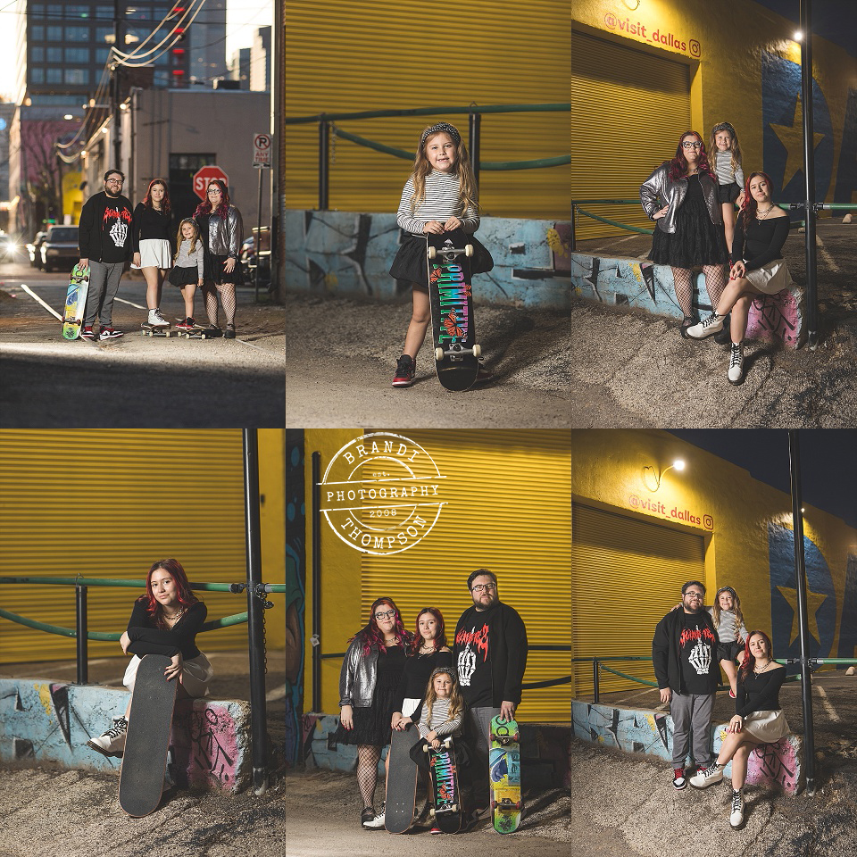 Today we have some Dallas family photos with the incredible R family. I’m so thankful to have been working with this family since mama was pregnant with K. We always have a lot of fun together, and I adore their rock and roll style. When we were brainstorming the session, I was super excited to hear they wanted to bring their skateboards. I love the punk rock album cover vibes, and we got so many fun images at our session. Both kids have their own strong and unique personalities, too, and I absolutely love that. You can just see how much mom and dad encourage them to be themselves, and they’re such a loving family. You really can feel the energy, and it’s so much fun to be around. Here are some of my favorite images from a most epic session in Deep Ellum!